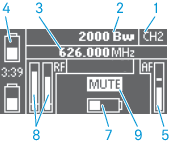 Wenn der EK 6042 im Empfänger-Einschub einer Videokamera betrieben wird, wird ein Videokamerasymbol angezeigt.