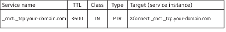 5. Create a PTR entry with an arbitrary name for a service instance that adheres to the DNS-SD specification; here, we use the name “XConnect”. Set the TTL to a sane value according to your network requirements.