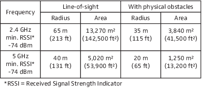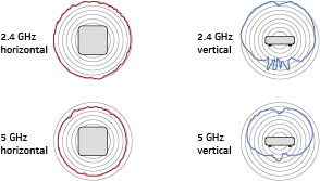 The system‘s WiFi coverage is determined by the access point, the reception quality of the connected devices and the environmental conditions. We recommend performing a site survey to understand interference, bandwidth usage and reception strength within the facility before and after the installation. The table and graphs below roughly estimates general coverage distance and pattern for Ruckus Zoneflex 7273. Please note that each facility may greatly vary based upon network and environmental conditions.