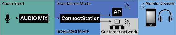 Make sure the input sensitivity and gain settings of the audio source as well as the gain settings of the ConnectStation are adjusted correctly.