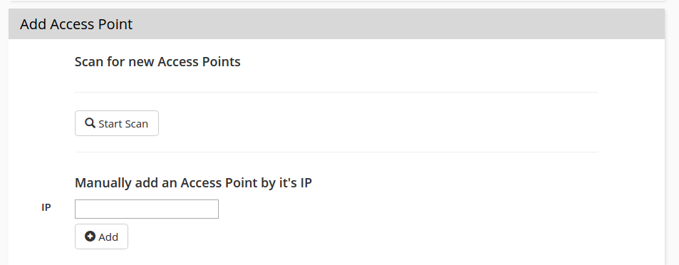 To manually add a known Access Point please provide the IP address of the Access Point:
