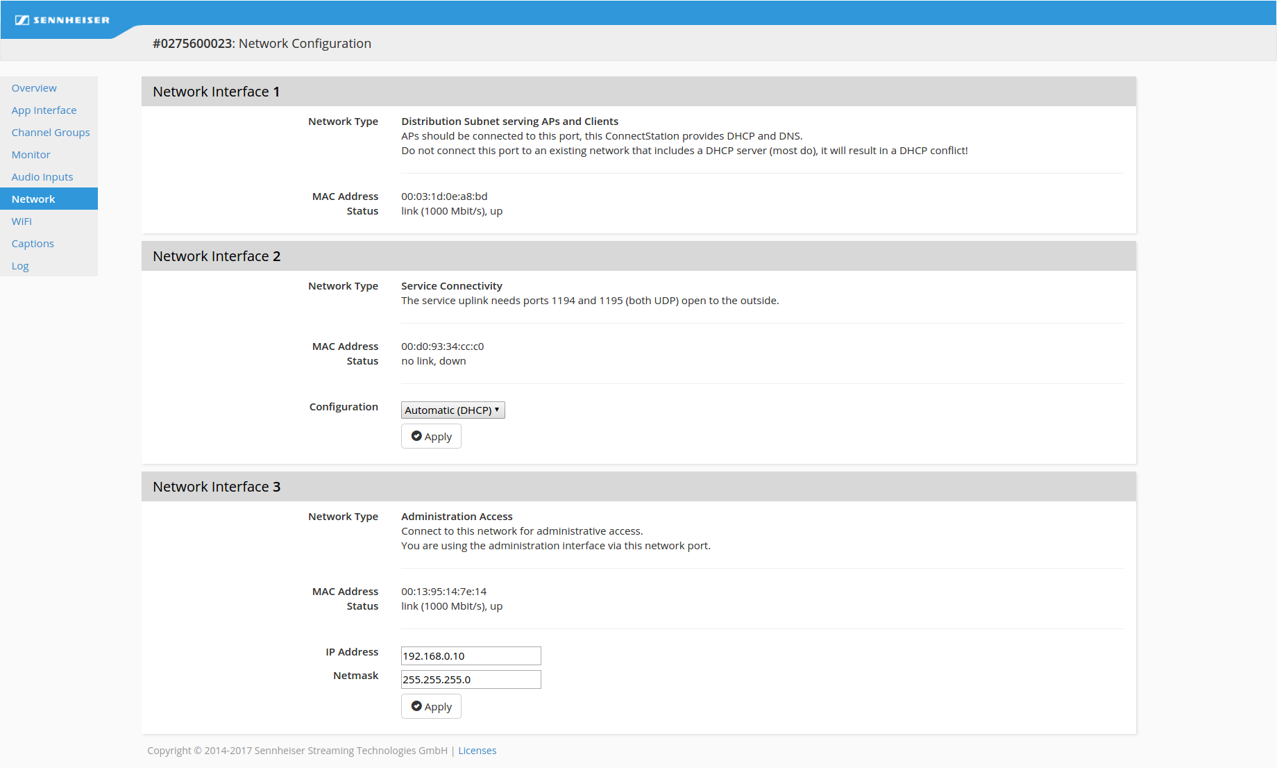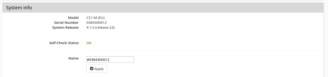 • The default name is the serial number of the ConnectStation. To change it enter a new name and click Apply.