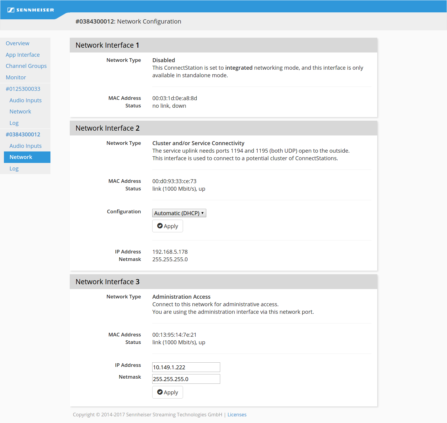 Note: Make sure this interface and the network are configured correctly. Otherwise the ConnectStation(s) might not function. For more information see