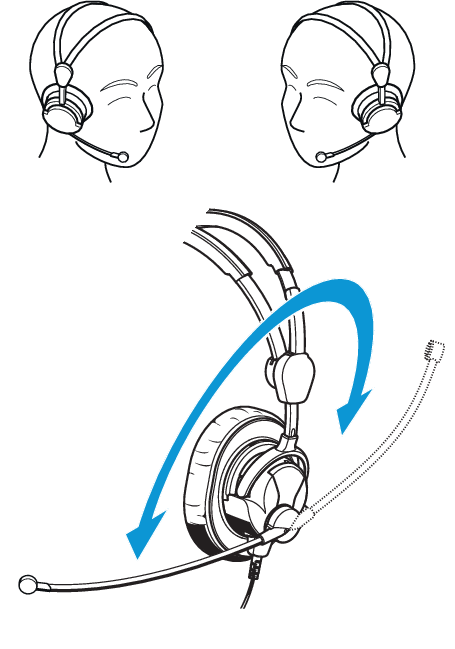 The microphone boom can be rotated 180°. You can then wear the microphone on either your right or left ear.