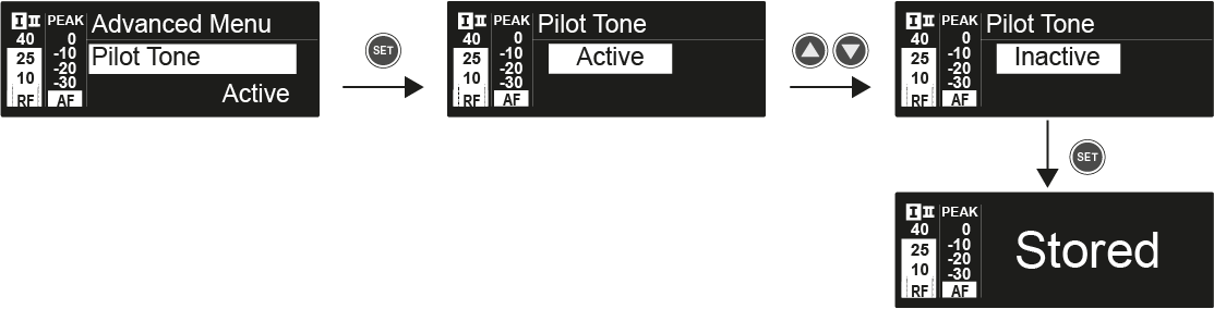 En la opción de menú Pilot Tone del submenú Advanced puede activar o desactivar la valoración del tono piloto.