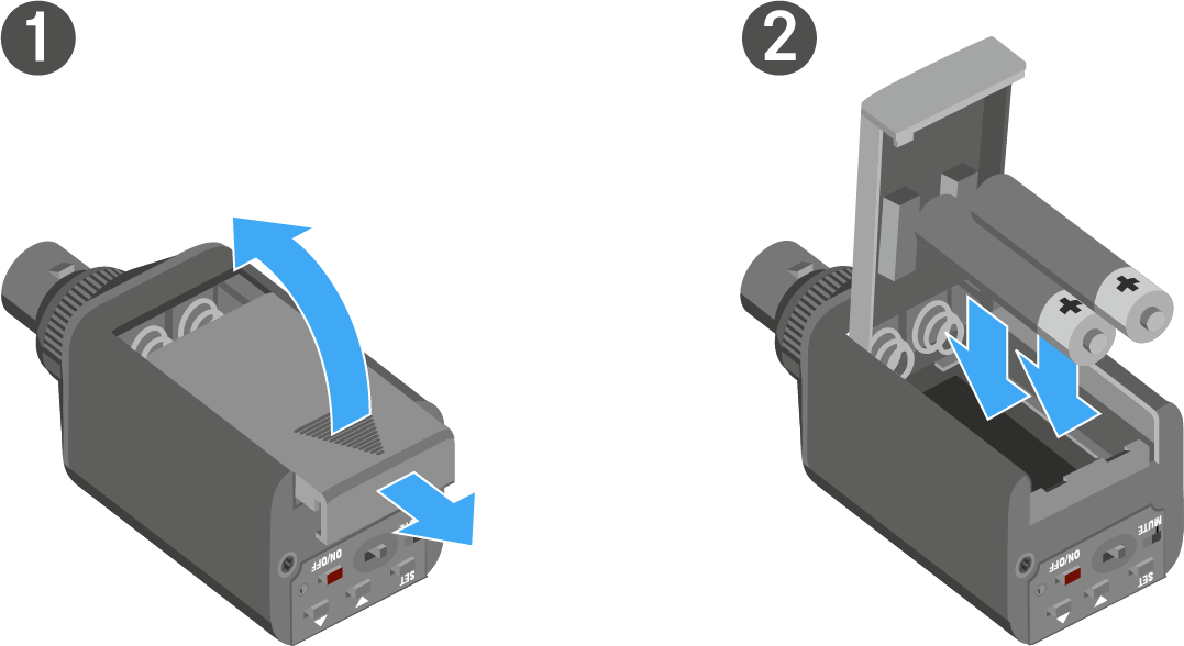 El transmisor de solapa se puede operar con baterías (tipo Mignon AA, 1,5 V) o con la pila recargable de Sennheiser BA 2015.