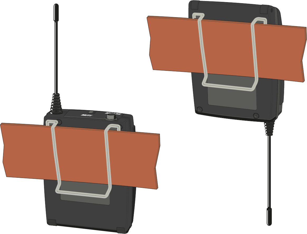 Con el clip de cinturón puede fijar el transmisor bodypack a la cintura del pantalón o a una correa de guitarra, por ejemplo.