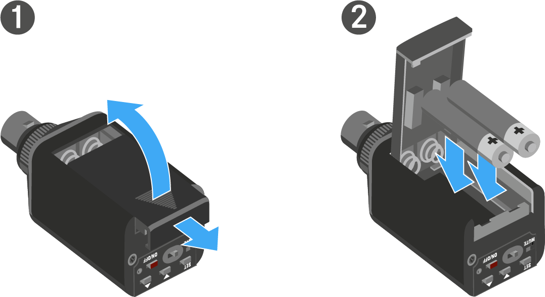 El transmisor de solapa se puede operar con baterías (tipo Mignon AA, 1,5 V) o con la pila recargable de Sennheiser BA 2015.