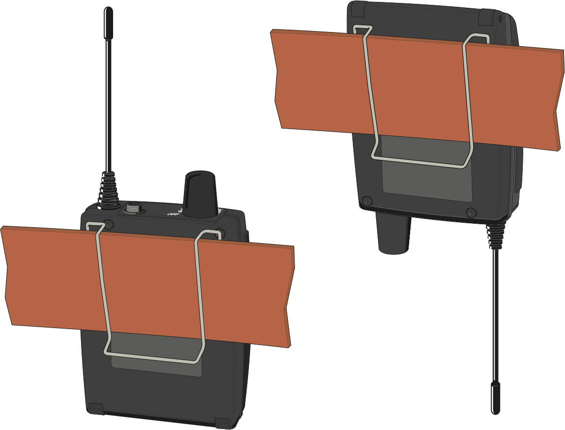 Con el clip de cinturón puede fijar el receptor Diversity a la cintura del pantalón o a una correa de guitarra, por ejemplo.