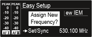 En la pantalla de los demás transmisores se visualiza el mensaje Assign New Frequency?.
