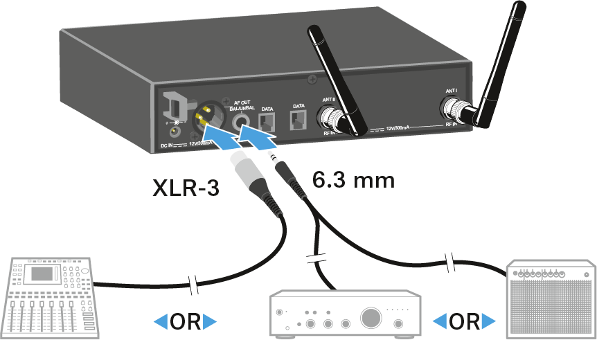 L’EM 100 G4 dispose d'une prise de sortie XLR-3M symétrique ainsi que d'une prise jack de sortie 6,3 mm asymétrique.