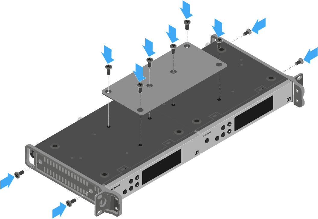 Vissez les deux équerres de montage sur les côtés du récepteur en utilisant les vis cruciformes précédemment enlevées.
