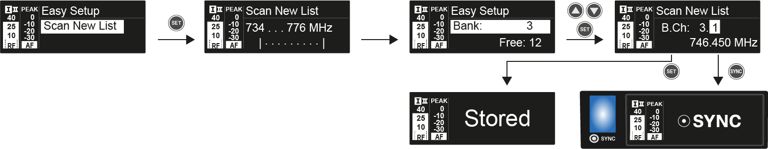 SET pour sauvegarder la sélection et effectuer ultérieurement une synchronisation de l’émetteur avec la fréquence choisie (voir