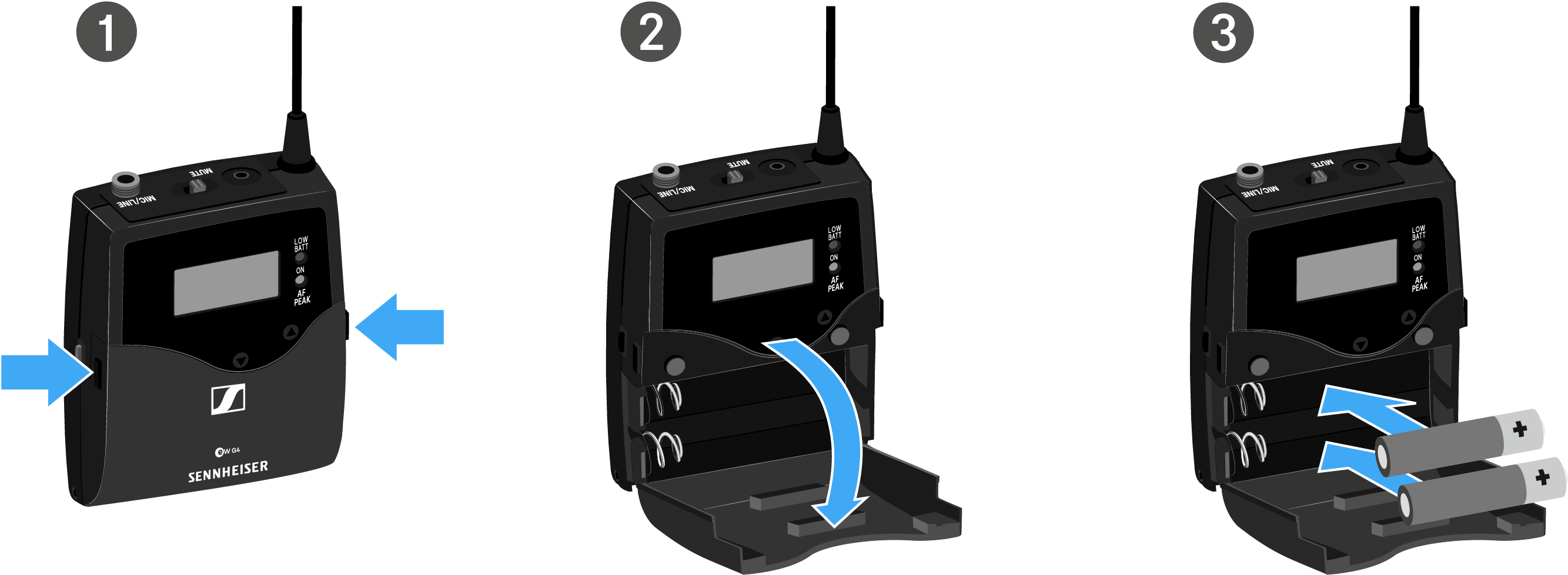 ew 300-500 G4 : INSTALLATION : Installer le SK 300 G4 : Insérer et retirer les piles / packs accu