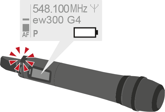 Vous pouvez alimenter le microphone radio soit avec des piles (type Mignon AA, 1,5 V), soit avec le pack accu BA 2015 rechargeable Sennheiser.