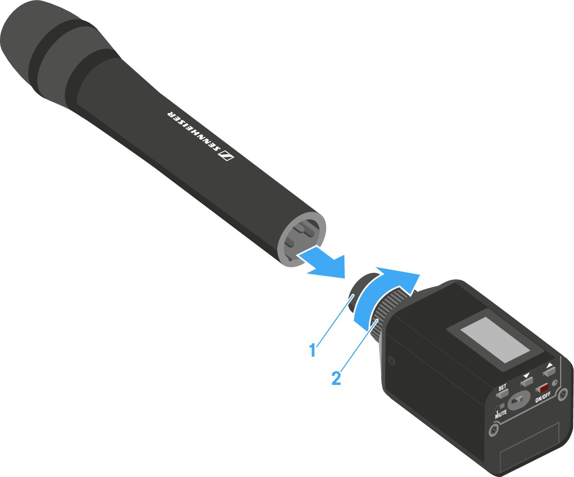 Insérez le connecteur XLR-3 (1) de l’émetteur enfichable dans la prise XLR-3 du microphone.