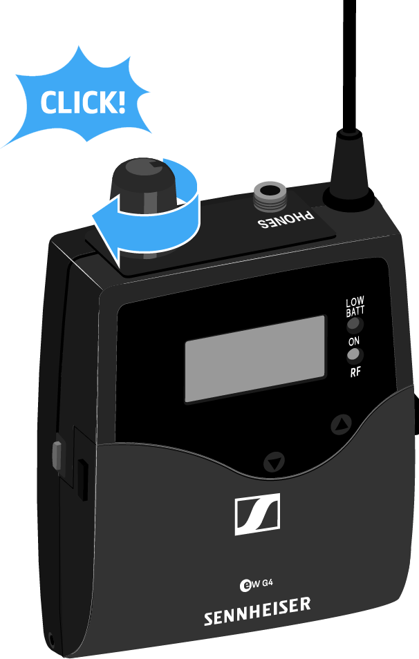 Tournez le bouton de réglage du volume dans le sens des aiguilles d’une montre en franchissant le cran.