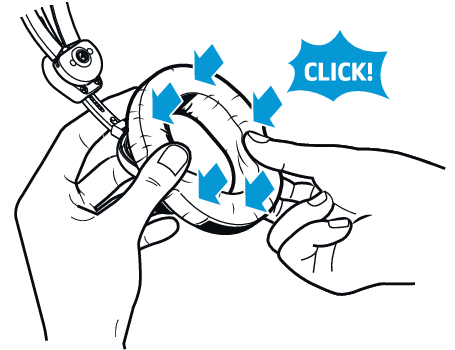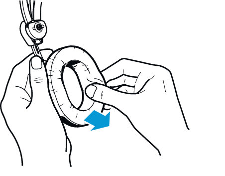 Fixez le nouveau coussinet à l’oreillette en pressant fermement tout autour du coussinet jusqu’à ce que les six ergots s’encliquettent en faisant un bruit.