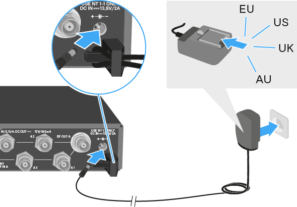 Utilize unicamente o alimentador fornecido NT 1-1. Foi ajustado para o seu splitter de antenas e garante a segurança de funcionamento.