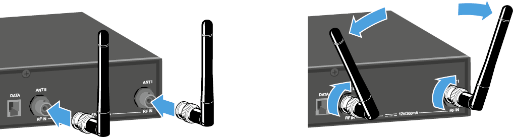 Rode ligeiramente as antenas de haste para a direita e para a esquerda, conforme ilustrado na figura.