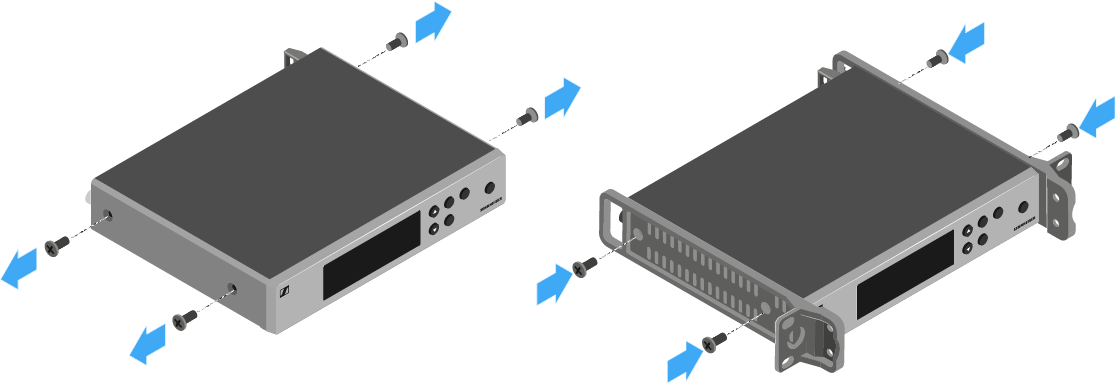 Aparafuse os dois esquadros de montagem com os parafusos Phillips anteriormente desenroscados na lateral do recetor.