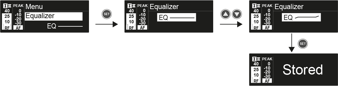No item de menu Equalizer, pode alterar a resposta em frequência do sinal de saída. Pode diminuir a zona dos graves e aumentar a zona dos agudos.