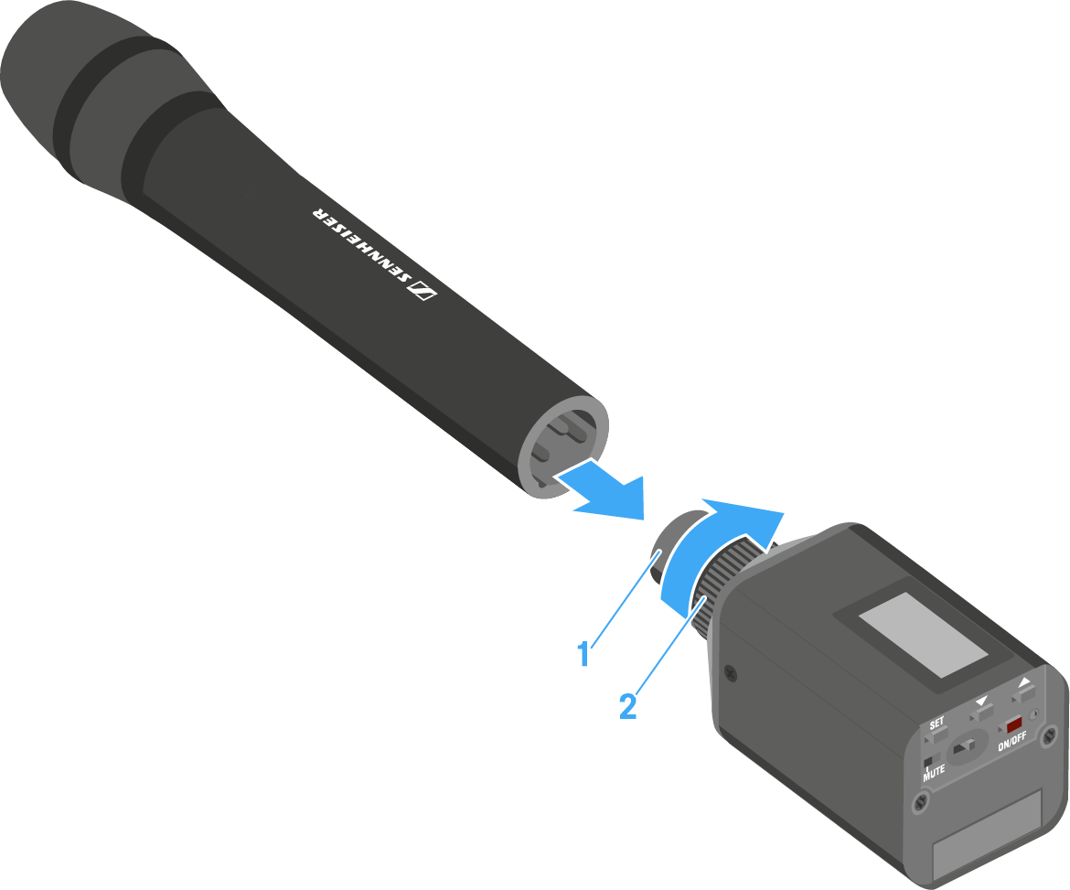 O conector XLR-3 (1) do emissor "plug-on" fica assim desbloqueado.