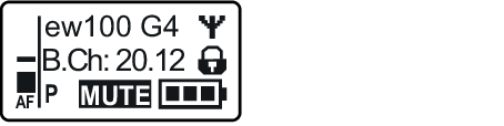 Indicações no visor do emissor portátil SKM 100 G4
