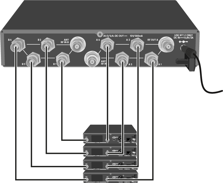 *Ligue a outra entrada de antena do recetor a uma das tomadas BNC B1 a B4 com um dos cabos BNC fornecidos.
