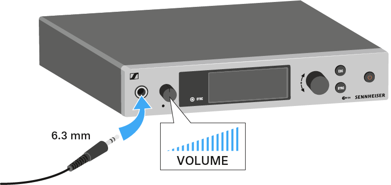 Através da saída para auscultadores EM 300-500 G4 (conector jack macho de 6,3 mm), pode ouvir o sinal de áudio.