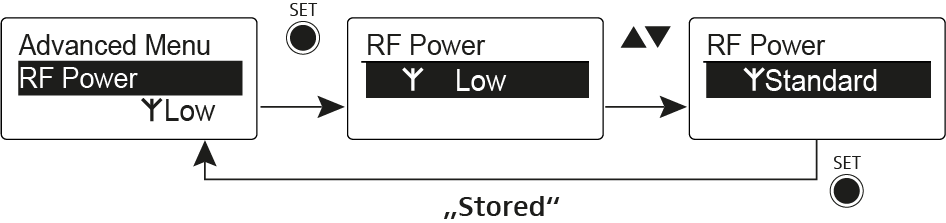 No item de menu RF Power, pode definir a potência de emissão em 3 níveis.