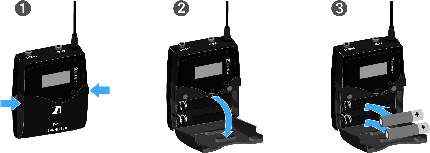Pode usar o recetor Diversity com pilhas (tipo AA, de 1,5 V) ou então com a bateria recarregável BA 2015 da Sennheiser.