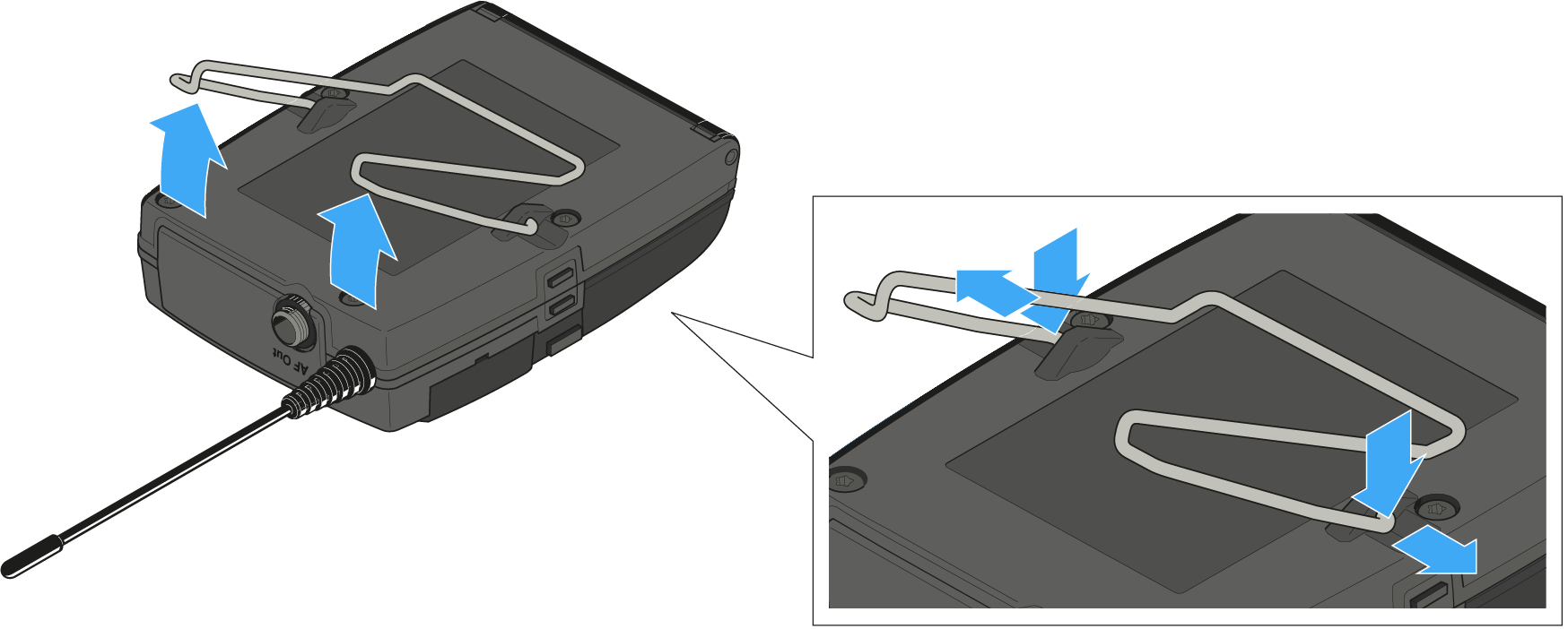 Utilize o kit para câmaras CA 2 fornecido para fixar o recetor Diversity na sapata do flash da câmara.