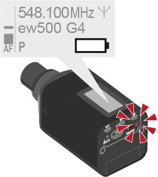 Pode utilizar o emissor "plug-on" com pilhas (tipo AA, de 1,5 V) ou então com a bateria recarregável BA 2015 da Sennheiser.