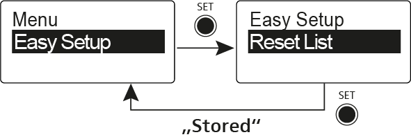 • Reset List: desbloquear todas as predefinições de frequência ocupadas e selecionar uma disponível: