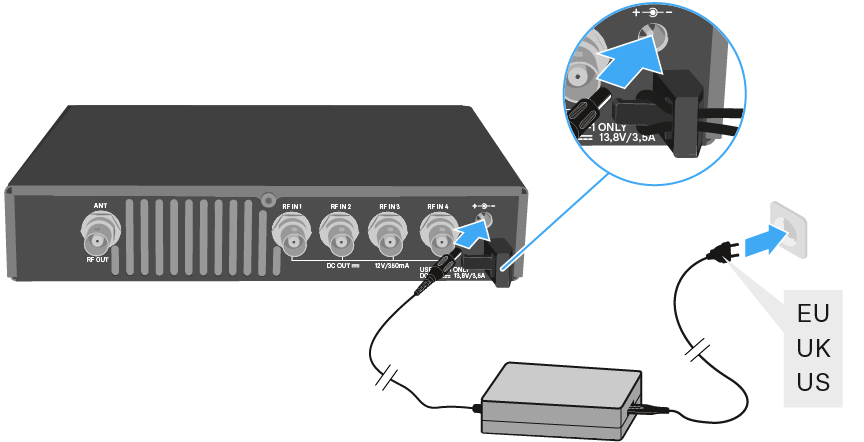 Utilize unicamente o alimentador fornecido NT 3-1. Foi ajustado para o seu combinador de antenas e garante a segurança de funcionamento.