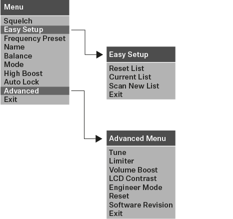 A figura ilustra a estrutura completa do menu do EK IEM G4 numa vista geral sintetizada.
