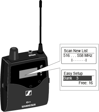 A configuração automática de frequências apenas funciona para os emissores da mesma gama de frequências. Os emissores de outra gama de frequências não são considerados.