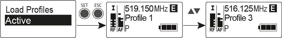 O perfil selecionado é carregado e ouve o sinal de áudio do respetivo recetor.