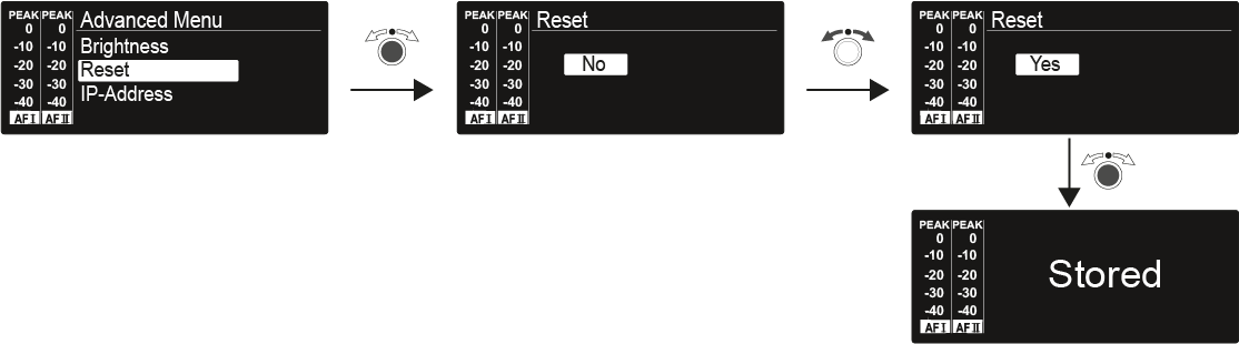 Ao repor o emissor, apenas se mantêm as especificações escolhidas do sinal piloto e dos bancos de canais