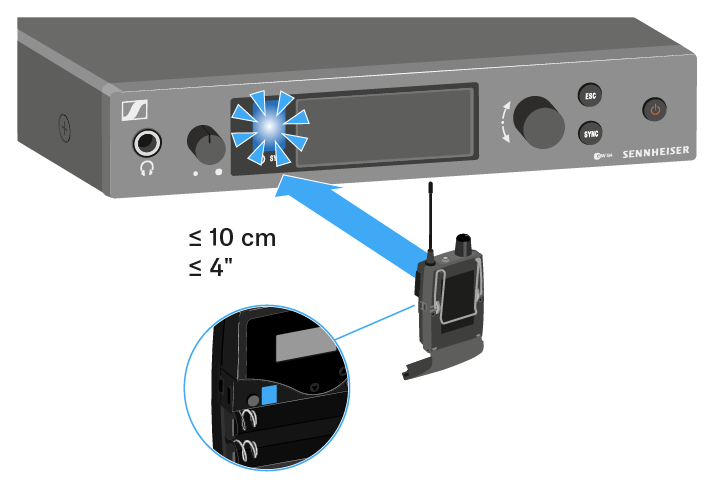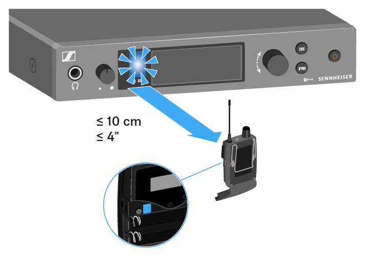 Pode sincronizar emissores e recetores da série ew IEM G4 através das interfaces de infravermelhos do emissor e do recetor.