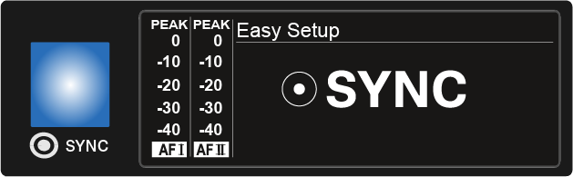 Surge a indicação SYNC no visor do emissor e o LED azul da interface de infravermelhos acende-se.