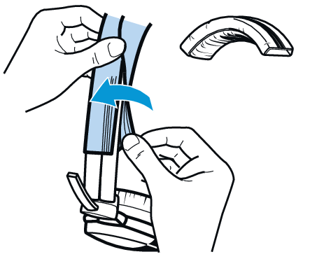 固定新的头垫,具体方式是从上部将外壳包件压到一起。